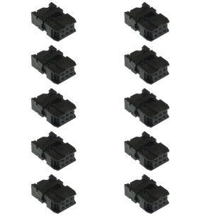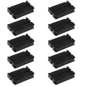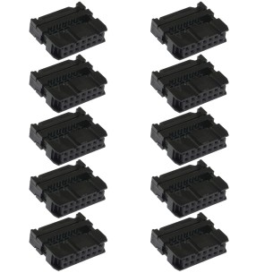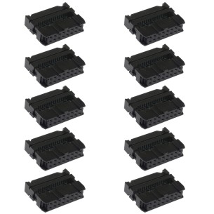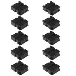 Zestaw 10 prostych gniazd męskich IDC 8P o rastrze 2,54 mm umożliwia szybkie i niezawodne łączenie przewodów taśmowych z układami elektronicznymi. Stosowany w projektach prototypowych, systemach sterowania i połączeniach płytek PCB. IDC-8P-S