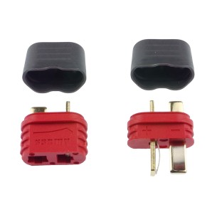 Zestaw złączy T-Dean (wtyk i gniazdo z osłonkami) o maksymalnym prądzie przewodzenia 40 A. Sprawdzi się jako złącze akumulatorów lub złącze zasilające w modelach RC. Amass 1015E
