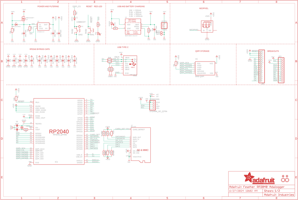 Feather RP2040 Adalogger to uniwersalna platforma do rejestrowania i odczytu danych, łącząca możliwości mikrokontrolera RP2040 z wygodą systemu Feather. Wyposażona w gniazdo kart microSD, umożliwia łatwe i szybkie zapisywanie dużych ilości danych w projektach pomiarowych, IoT lub mobilnych. Dzięki wbudowanemu portowi USB typu C oraz ładowarce akumulatorów Li-Po, moduł idealnie nadaje się do zastosowań przenośnych, zapewniając automatyczne przełączanie między zasilaniem bateryjnym a USB. Płytka zawiera również złącze STEMMA QT/Qwiic, które pozwala na błyskawiczne podłączenie czujników i modułów I2C bez lutowania.
