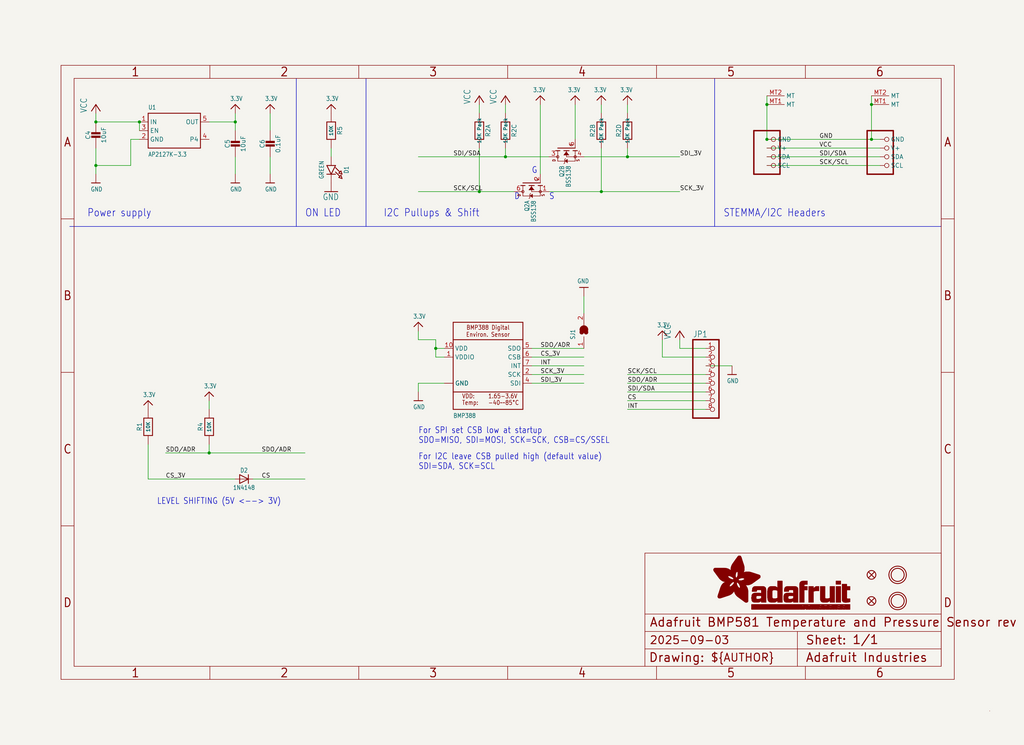 Moduł z cyfrowym barometrem BMP390. Umożliwia pomiar ciśnienia w zakresie od 300 do 1250 hPa oraz temperatury od -40℃ do 85℃. Komunikuje się przez I2C lub SPI. Adafruit 4816