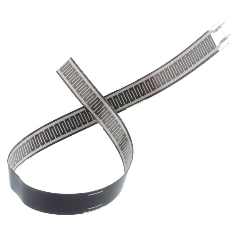 Elastyczny czujnik o wymiarach 400x15 mm, który może być używany do wykrywania niewielkich sił. Jest przeznaczony do wykrywania nacisku statycznego i dynamicznego przy dużej prędkości reakcji. Wykonany został z cienkiej folii (0,35 mm) o doskonałych właściwościach mechanicznych i przewodzących warstwach wrażliwych na nacisk nanometryczny. Działanie czujnika opiera się na rejestrowaniu intensywności i częstotliwości siły. Dzięki temu jest on powszechnie stosowany we wszystkich rodzajach urządzeń, takich jak przełącznik ciśnienia, system monitorowania czy urządzenia medyczne. Pełna dokumentacja dostępna jest na stronie produktu.