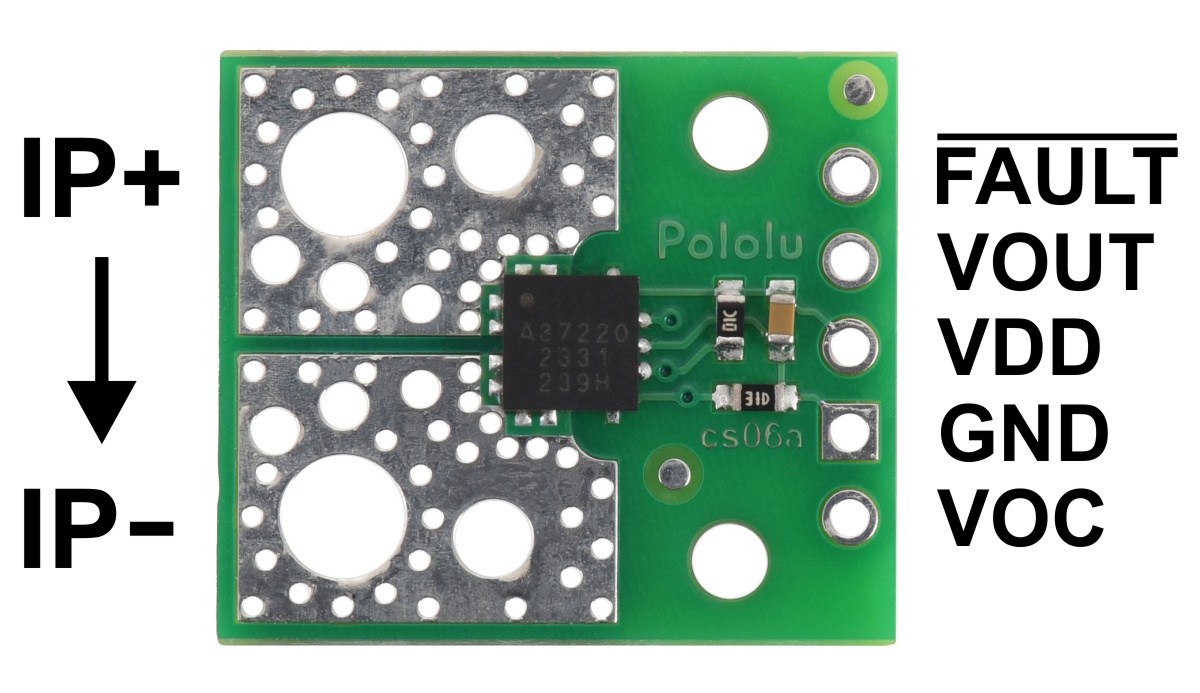 Pololu 5294 jest kompaktową płytką nośną zawierającą czujnik prądu oparty na układzie ACS37220LEZATR-200B5, przeznaczonym do pomiaru prądu przemiennego i stałego w zakresie ±200 A przy nominalnym napięciu zasilania 5 V. Czujnik wykorzystuje efekt Halla do pomiaru natężenia prądu w izolowanej ścieżce pomiarowej o bardzo niskiej rezystancji. Pomiar sygnału odbywa się poprzez wyjście analogowe, którego napięcie zmienia się proporcjonalnie do przepływającego prądu.