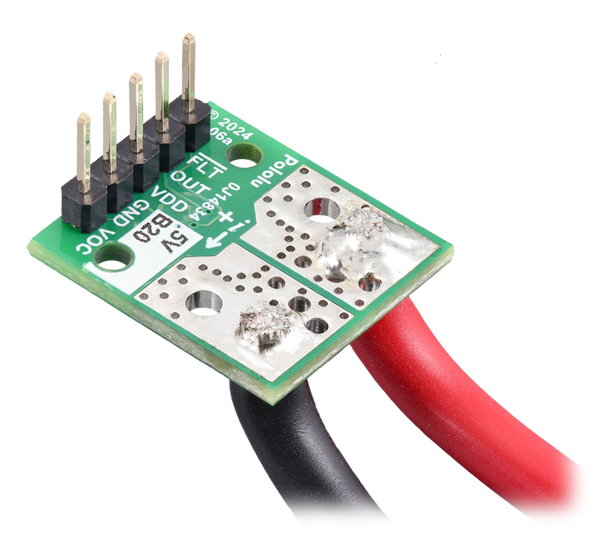 Moduł czujnika prądu ACS72981, który wykorzystuje efekt Halla do precyzyjnego i bezpiecznego pomiaru prądu DC, zapewniając elektryczną izolację ścieżki prądowej. Dzięki szerokopasmowemu wyjściu analogowemu (do 250 kHz) i niskiej rezystancji przewodzącej (0,2 mΩ) minimalizuje straty energii i oferuje szybki czas reakcji poniżej 2 µs. Pololu 5264