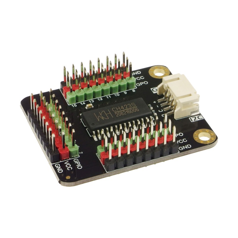 Moduł 24-kanałowego ekspandera portów wejścia/wyjścia sterowany przez interfejs I2C. Oparty został o układ CH423. 8 portów może działać jako wejścia/wyjścia a 16 tylko jako wyjścia. Maksymalny prąd wyjścia nie powinien przekraczać 15 mA, a piny są kompatybilne z napięciami 3,3 V oraz 5 V. Ekspander sprawdzi się w projektach związanych z oświetleniem LED lub wyświetlaczami matrycowymi. Pełna dokumentacja dostępna jest na stronie Wiki produktu.