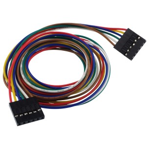 Female-female connection cable, 6-core, 64 cm long, in various colors. The cable from two sides is terminated with a 6x1 female goldpin connector in 2.54 mm pitch. CAB_F-F-6x1 (Rainbow-1-64)