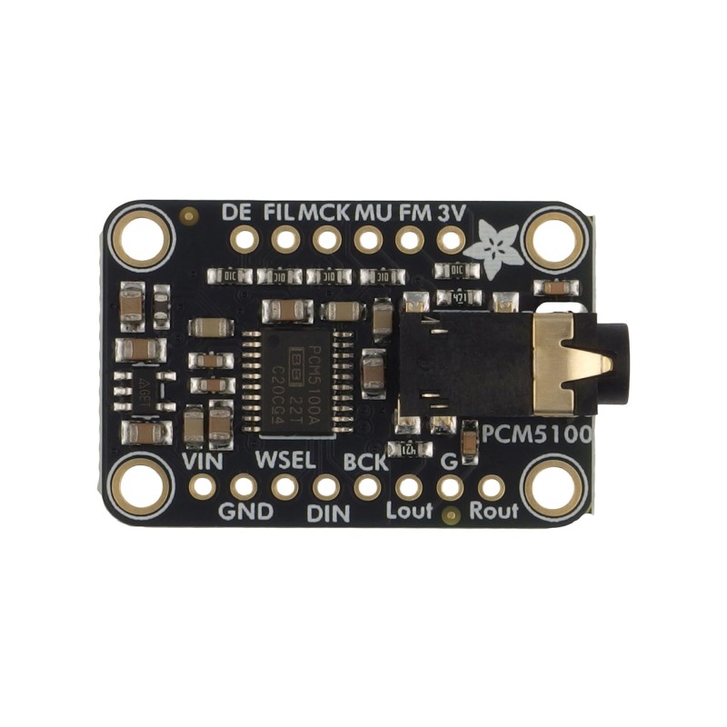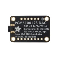 High-quality digital-to-analog converter that allows for pure stereo audio playback without the need for I2C configuration or the MCLK pin. It supports I2S signals (BCLK, WSEL, DIN) and audio formats up to 32 bits and 384 kHz, providing an excellent signal-to-noise ratio (112 dB). Audio output is available via a 3.5 mm jack or on-board pads, and the module works best as a line output to amplifiers and audio systems. Adafruit 6250