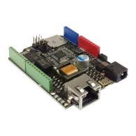 IoT development board with ATmega32U4 microcontroller and W5500 Ethernet chip. It uses a bootloader and is compatible with Arduino Leonardo, so it can be programmed using the Arduino IDE environment. The module has a built-in PoE (Power over Ethernet) function, TCP/IP stack and supports such protocols as TCP/IP, UDP, ICMP, ARP, IGMP, PPPoE. Supports Wake on LAN over UDP function. It supports up to 8 independent sockets simultaneously and has a built-in 32 KB internal memory buffer. Besides, SPI W5500 supports 80MHz speed and a new efficient protocol for high-speed network communication. In order to reduce the power consumption of the system, the W5500 provides WOL (Wake on LAN) and a shutdown mode. The board offers a MicroSD card slot. Full documentation with examples is available on the product wiki page.