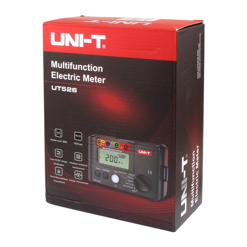 UT526 is a multifunction meter for comprehensive electrical installation measurements, including insulation tests, RCD operation, and circuit continuity. With a wide range of test voltages and data storage functions, it is perfectly suited for inspection, measurement, and service work.