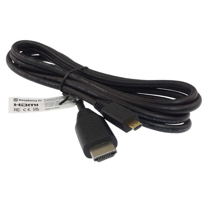 MicroHDMI - HDMI cable in black color, 2 m long. Intended for use with Raspberry Pi 4 model B and Raspberry Pi 5