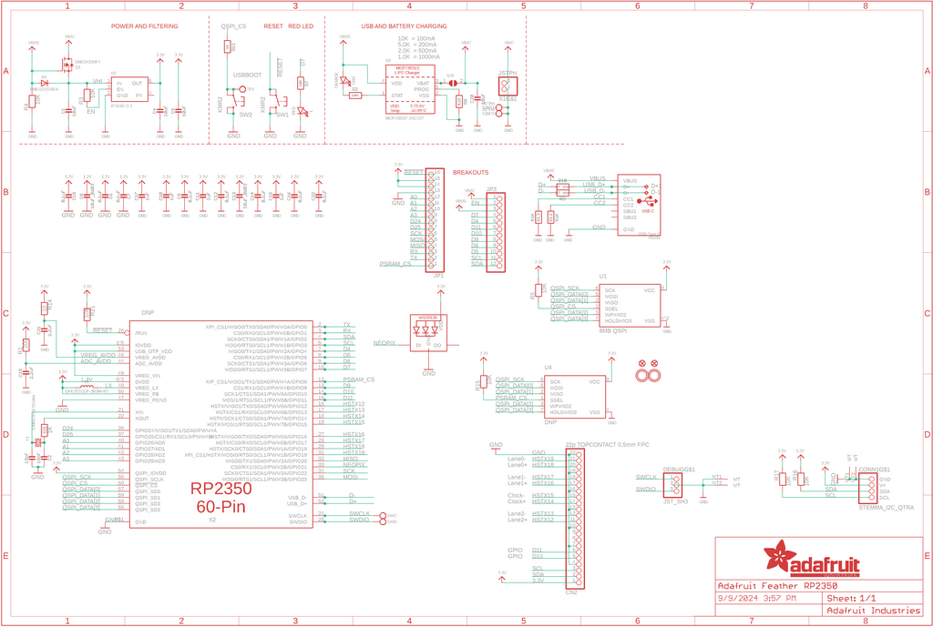 The board offers 520 KB of RAM and external 8 MB QSPI Flash memory for storing code, configurations, and user data. It also supports expansion with PSRAM, extending its potential for applications requiring large buffers, such as image or audio processing. Feather RP2350 provides a rich set of interfaces, including I2C, SPI, UART, and 24 PWM channels, ensuring versatility in communication and device control. The included HSTX port enables high-speed differential transmission, for example generating DVI signals without using PIO. The board features a STEMMA QT connector for plug-and-play modules, greatly speeding up prototyping. Additionally, it includes a 200 mA+ LiPo charger and a USB-C port for programming via the UF2 bootloader.