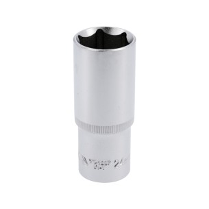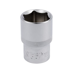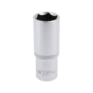 10 mm long hex socket with a 1/2'' (12.7 mm) drive, designed for working with deeply seated bolts in workshop and assembly environments. The 76 mm length allows operation in confined spaces. The hexagonal profile ensures a precise fit on the bolt, while the CrV 50BV30 steel construction with a hardness of 43–47 HRC guarantees wear resistance and durability under intensive use. The chrome-plated, satin, and polished surface protects the tool against corrosion. The AS-DRIVE system enables effective torque transfer while minimizing the risk of bolt edge damage. Compliance with DIN 3121 and the presence of locking grooves enhance work safety.
