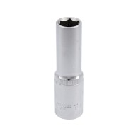 13 mm long hex socket with a 1/2'' (12.7 mm) drive, designed for use with deeply seated bolts and nuts in hard-to-reach areas. The 76 mm length facilitates operation in confined spaces, while the hexagonal profile ensures precise fit with fasteners. Made from high-strength CrV 50BV30 steel with a hardness of 43–47 HRC, it is resistant to wear and deformation. The chrome-plated, satin, and polished finish protects against corrosion. The AS-DRIVE system transfers torque to the flat surfaces of the bolt, reducing the risk of damage. Compliant with DIN 3121 and equipped with locking grooves.