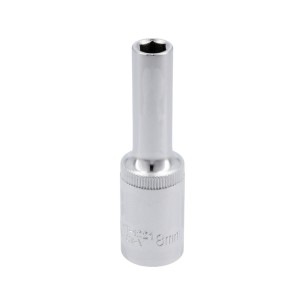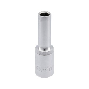 The YT-1221 long socket in 8 mm size is made of durable CrV 50BV30 steel, designed for precise tasks involving bolts in tight spaces. The AS-DRIVE system and locking grooves ensure effective and safe operation in service and workshop environments.