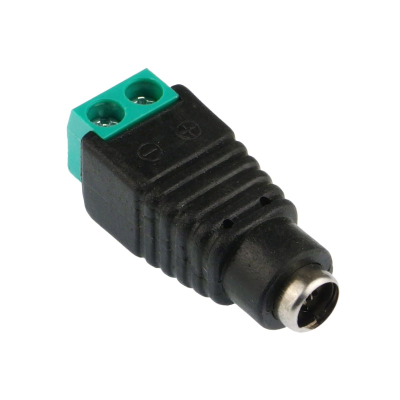 DC connector adapter that allows you to easily convert a 5.5x2,1mm female DC Jack connector to a terminal connector. This adapter is perfect for applications in electronic projects, such as powering LED strips, electronic devices, monitoring systems, and other systems that require a stable connection to the power supply. Thanks to the simplicity of use, there is no need for soldering - just connect the wires to the terminals.
