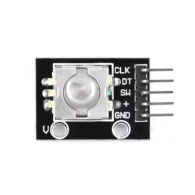 Rotary encoder that enables precise detection of direction and number of revolutions using digital pulses. Equipped with an integrated button, five pins (CLK, DT, SW, VCC, GND) and a metal knob, it is ideal for user interfaces and device control. Thanks to its compatibility with Arduino and Raspberry Pi, durability up to 20,000 cycles and simple integration, it is suitable for educational and DIY projects. KY-040