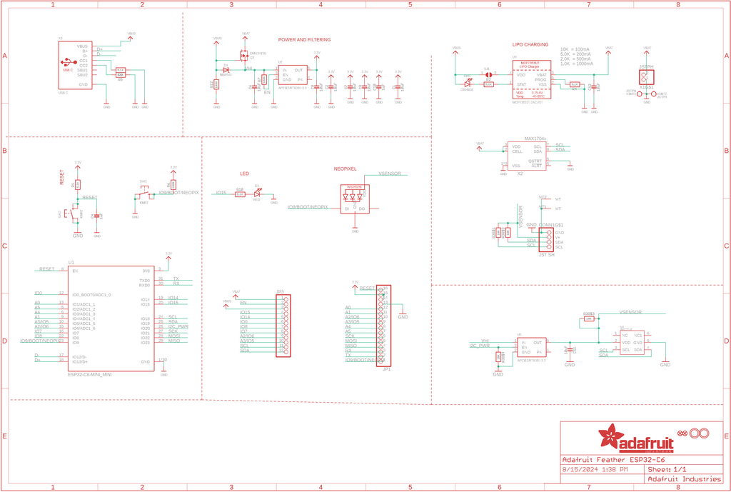 This compact development board features Wi-Fi 6, Bluetooth 5 LE, and 802.15.4, ideal for Zigbee and Matter-based IoT projects. It offers numerous GPIOs, onboard LiPo charging, and battery monitoring thanks to the MAX17048 chip. It includes a NeoPixel LED and a STEMMA QT port for quick sensor connection. Its energy-efficient design, with a deep sleep mode of approximately 17µA, is ideal for battery-powered applications. Adafruit 5933