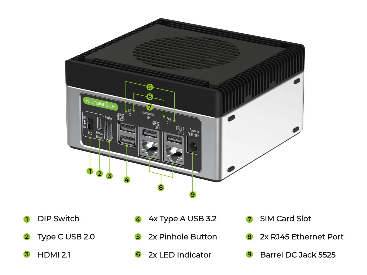 reComputer Super J4011 is a compact AI edge computer with NVIDIA Jetson Orin NX 8GB, offering up to 117 TOPS of computing power and extensive expansion capabilities. With passive cooling, support for CSI cameras, and advanced interfaces, it is an ideal solution for vision systems, robotics, and AI applications in industrial environments. Seeed Studio 114110313