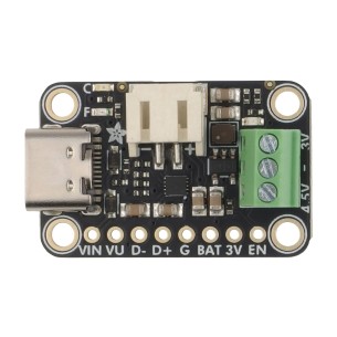 Compact charger module that allows you to power your electronics projects from USB-C, DC power (5-18V) or solar panel. Supports various cell types (LiIon, LiPoly, LiFePO4) and offers a choice of charging currents (250mA, 500mA, 1A), automatically optimizing energy harvest from solar panels without the need for an additional MPPT. With built-in power path management, status LEDs and regulated LOAD output (up to 4.5V), it is ideal for mobile and energy-independent projects. Adafruit 6091