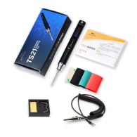 Miniware TS21 is a precise, portable digital soldering iron with adjustable temperature control, designed for professionals and electronics enthusiasts. With a heating power of up to 100 W and support for fast charging via USB Type-C (PD 2.0), the device heats up rapidly and can be powered even by a power bank or smartphone charger. The soldering iron is compatible with C210 series tips and features an OLED display showing key operating parameters. Its compact shape and CNC-machined aluminum alloy housing provide comfortable handling and a solid build. Additionally, the device includes built-in LED lighting to assist in precision work and an accelerometer that automatically puts the iron into sleep mode when not in use. The TS21 allows firmware updates and setting configurations via a computer. Thanks to its wide temperature range from 100 to 450°C and fast heat-up time, the soldering iron is ideal for both small repairs and more advanced soldering tasks. This versatile tool combines the functionality of a soldering station with portability and ease of use.