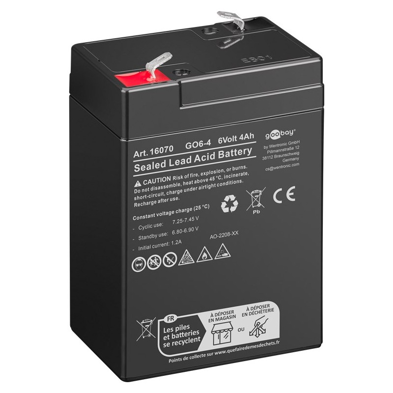 Goobay 6 V 4000 mAh lead-acid battery is a reliable power source for backup and auxiliary applications. Featuring a 4.8 mm Faston connector, maintenance-free operation, and long service life, it is ideal for use in UPS systems, emergency lighting, and backup power supplies. Its durable construction and low self-discharge ensure long-lasting, stable performance in various environmental conditions.