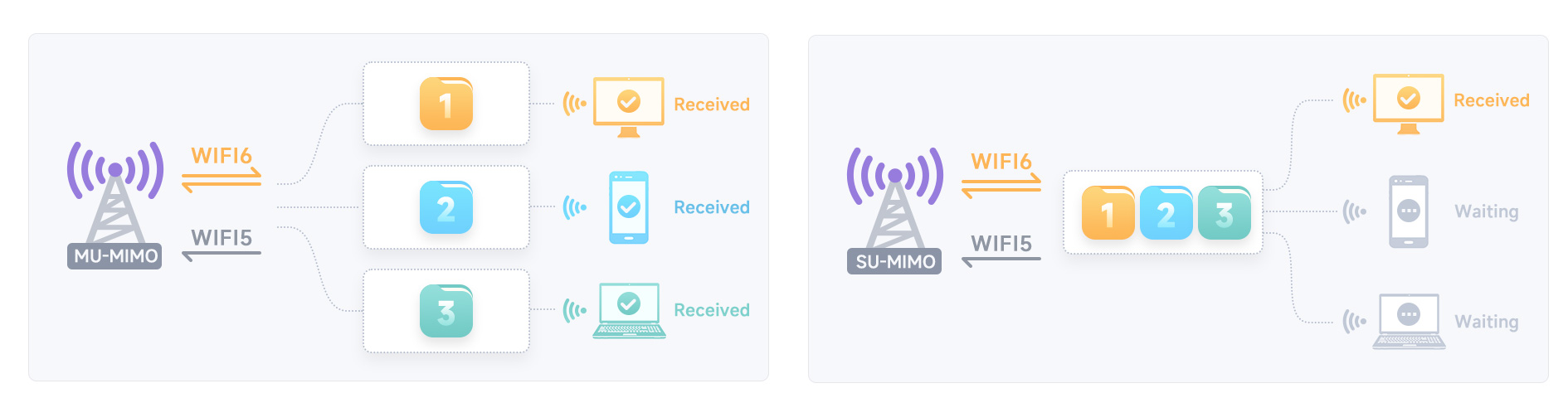 The Wi-Fi 6 interface offers data rates up to 574 Mb/s in the 2.4 GHz band and up to 2400 Mb/s in the 5 GHz band. The use of MU-MIMO technology allows simultaneous communication with multiple devices, improving connection quality and transmission efficiency in environments with high network load.