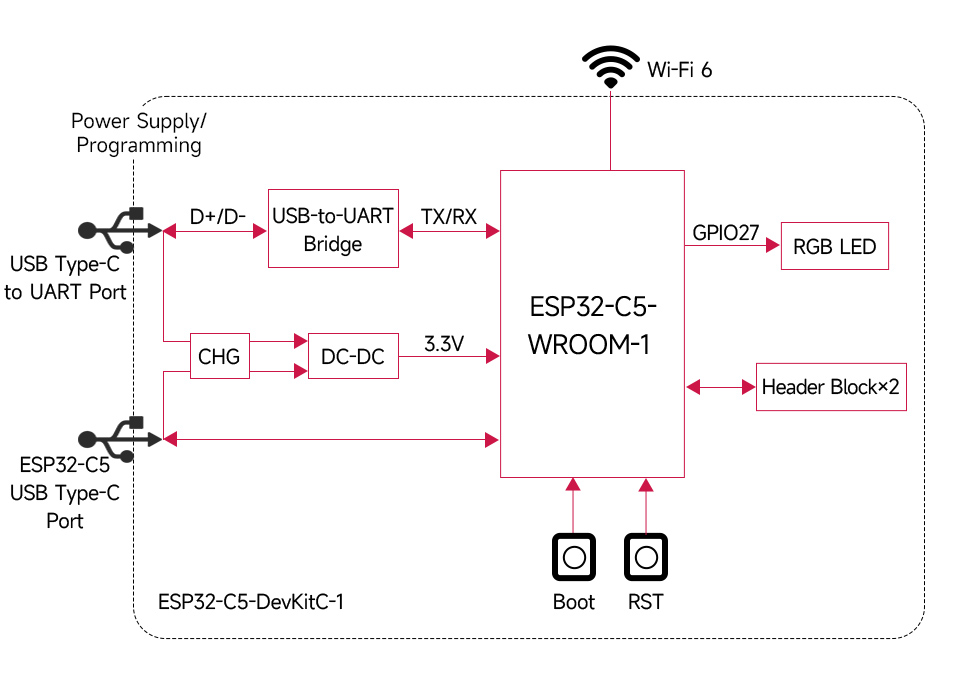 Płytka rozwojowa Waveshare ESP32-C5-WIFI6-KIT-N16R8 zaprojektowana została z myślą o aplikacjach IoT wymagających nowoczesnej komunikacji bezprzewodowej oraz obsługi wielu protokołów jednocześnie. Moduł oparty jest na układzie ESP32-C5-WROOM-1 z jednordzeniowym procesorem RISC-V taktowanym częstotliwością do 240MHz, zapewniającym stabilną pracę systemów sieciowych i bramek komunikacyjnych.