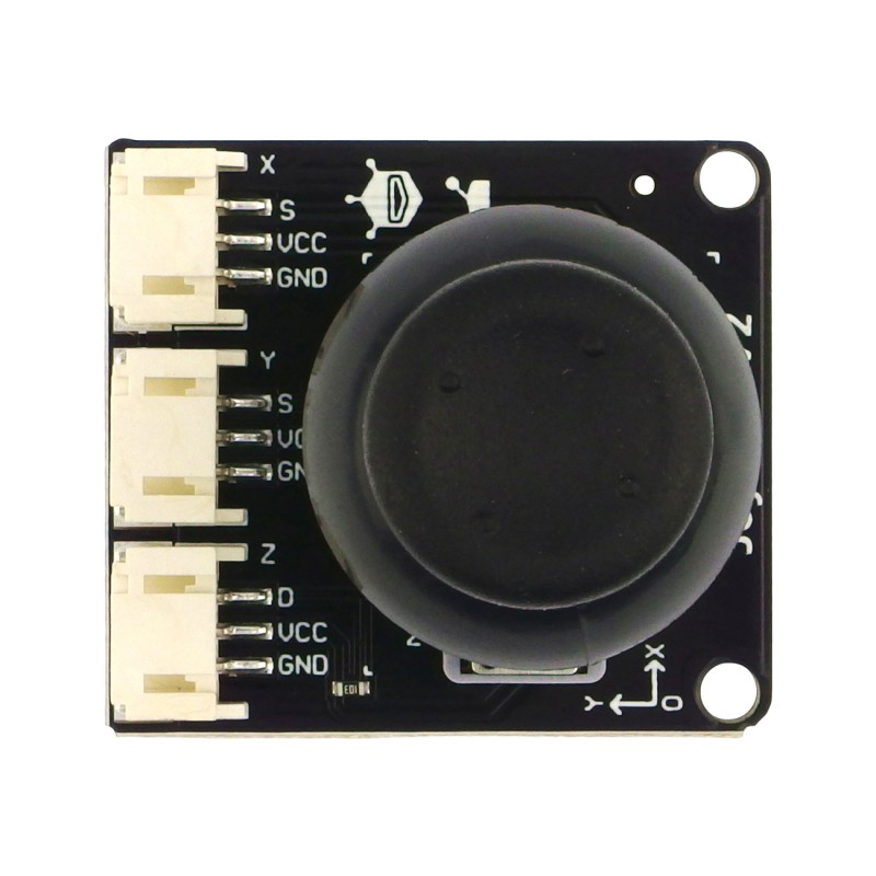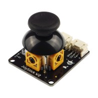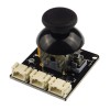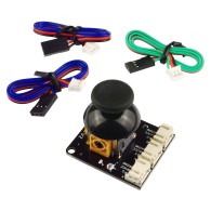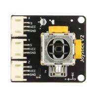 Gravity: Joystick Module V2 to moduł joystickiem. Na płytce umieszczono trzy złącza typu Gravity. Na dwóch złączach dostępne są wyjścia analogowe (dane z osi X i Y), na trzecim natomiast wyjście cyfrowe (oś Z). Moduł posiada dwa otwory montażowe, dzięki czemu może być łatwo przymocowany do urządzenia. Produkt może znaleźć zastosowanie we wszystkich projektach wymagających sterowania np. obsługa menu wyświetlacza, czy wykonania kontrolera dla robota mobilnego. Moduł może być zasilany napięciem z zakresu 3,3...5 V
