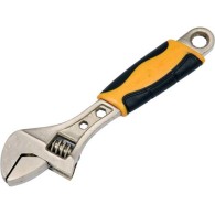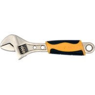 Klucz nastawny marki Vorel o długości 150 mm, wykonany z kutej stali węglowej 45, z czernioną powierzchnią, polerowaną główką, rozwarciem szczęk 19 mm oraz gumowaną rękojeścią. Vorel-54065