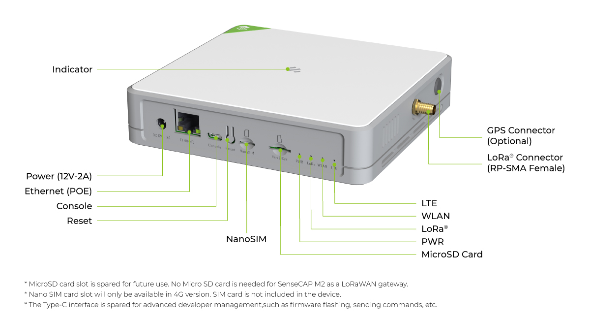 Brama wyposażona jest w złącze Ethernet z funkcją PoE, wewnętrzną antenę Wi-Fi oraz zewnętrzną antenę LoRa 3 dBi. Zarządzanie odbywa się przez przeglądarkę internetową lub lokalną konsolę SenseCAP. Gateway posiada wbudowany serwer LoRaWAN oparty na ChirpStack, co umożliwia szybkie uruchomienie lokalnej infrastruktury sieciowej bez potrzeby korzystania z chmury. Obudowa przystosowana do zastosowań wewnętrznych z możliwością rozszerzenia o dodatkową obudowę zewnętrzną.