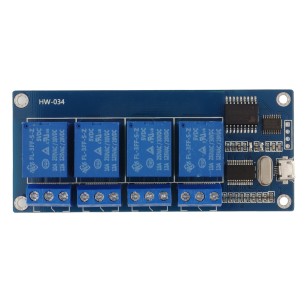 Przemysłowy moduł z 4 przekaźnikami o obciążeniu do 10 A. Wykorzystuje protokół Modbus RTU i interfejs komunikacyjny RS485 lub RS232. DFRobot FIT0827