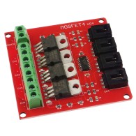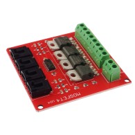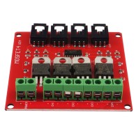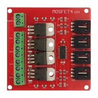 Czterokanałowy moduł mocy, oparty na tranzystorach MOSFET. Moduł nadaje się do przełączania obwodów wymagających zasilania o większej wydajności prądowej i większym napięciu niż może to zrobić zwykły tranzystor. Tranzystory mosfet mogą przełączać większe moce w sposób szybszy i efektywniejszy niż przekaźniki czy tranzystory PNP lub NPN. Idealnie nadaje się do obwodów zasilania, sterowników silników, obwodów oświetlenia. Moduł zgodny z RoHS.