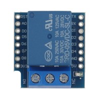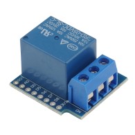 Moduł WeMos z przekaźnikiem. Cewka przekaźnika zasilana napięciem 5 V. Przeznaczony do pracy m. in. z modułem WeMos D1 Mini WiFi.