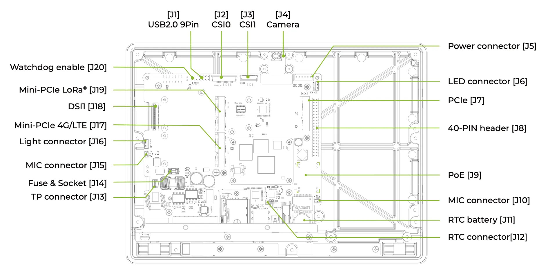 Panel wyposażono w liczne interfejsy komunikacyjne: RS485, RS232, CAN bus, 4 wejścia DI, 4 wyjścia DO, Gigabit Ethernet, USB oraz 40-pin GPIO. Obsługa opcjonalnych modułów 4G LTE i LoRa®, a także wbudowane Wi-Fi i BLE, zapewniają szerokie możliwości komunikacji przewodowej i bezprzewodowej. Wyświetlacz IPS o rozdzielczości 1280 × 800 i jasności 400 nitów oferuje 10-punktowy dotyk pojemnościowy, co czyni go wygodnym w obsłudze nawet w wymagających środowiskach.