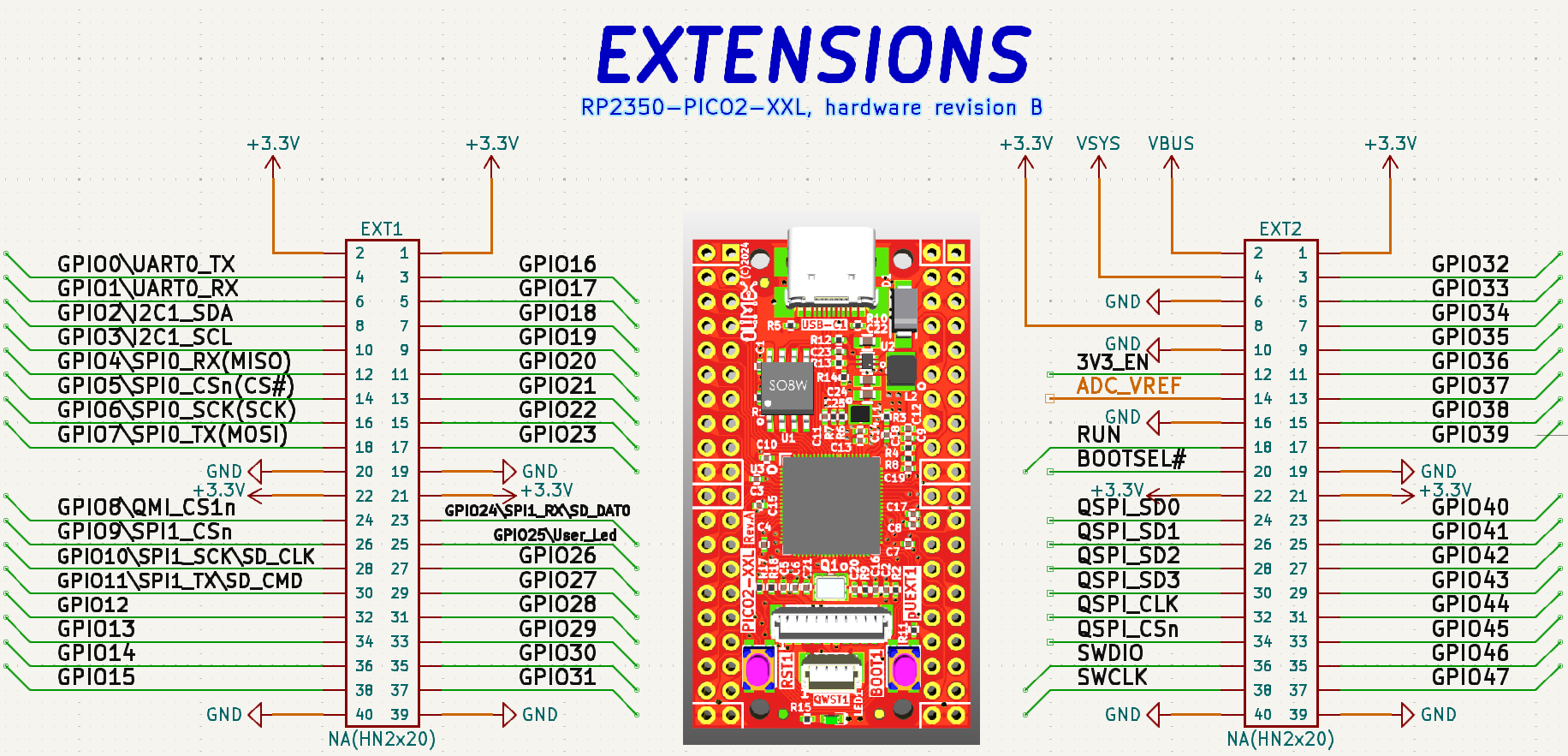RP2350-PICO2-XXL to rozbudowana wersja popularnej płytki rozwojowej "Raspberry Pi Pico 2", oferująca znacznie większe możliwości oraz dostęp do wszystkich 48 pinów GPIO. Wyposażona w wydajny mikrokontroler RP2350B z dwoma rdzeniami (Cortex-M33 lub RISC-V) taktowanymi zegarem do 150 MHz, zapewnia wysoką wydajność do zastosowań embedded i IoT. Wersja XXL została ulepszona o 16 MB pamięci Flash oraz 8 MB pamięci PSRAM, dzięki czemu idealnie nadaje się do bardziej złożonych projektów. Dodatkowo na płytce znajduje się czytnik kart microSD, umożliwiający łatwą obsługę danych zewnętrznych. Dzięki złączom USB-C, Qwiic/Stemma Qt oraz UEXT można szybko i wygodnie podłączać peryferia. Płytka posiada również przyciski BOOT i RESET oraz diodę sygnalizacyjną LED. To doskonała platforma dla projektantów systemów wbudowanych, hobbystów oraz twórców urządzeń końcowych, którzy potrzebują maksymalnej liczby wyprowadzeń GPIO i dużej przestrzeni na dane.