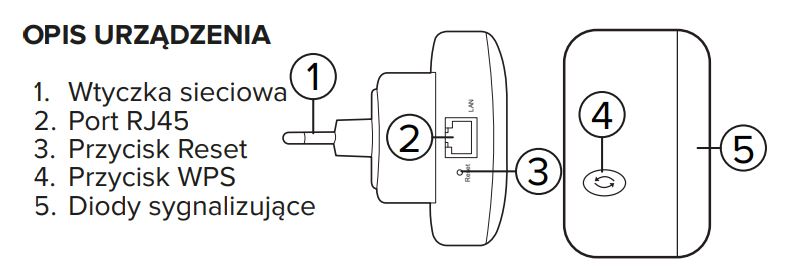 Wzmacniacz sygnału sieci Wi-Fi 2,4 GHz (IEEE 802.11 b/g/n) z obsługą do 10 użytkowników, z portem RJ45 i łatwą konfiguracją. Rebel KOM1030