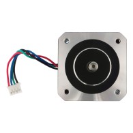 Bipolarny silnik krokowy NEMA17. Ma rozdzielczość 200 kroków/obrót (1.8° na krok), napięcie znamionowe 12 V i pobiera prąd o natężeniu 0,4 A na cewkę