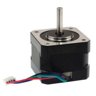 Bipolarny silnik krokowy NEMA17. Ma rozdzielczość 200 kroków/obrót (1.8° na krok), napięcie znamionowe 2 V i pobiera prąd o natężeniu 1,5 A na cewkę. 17HD40005-22B