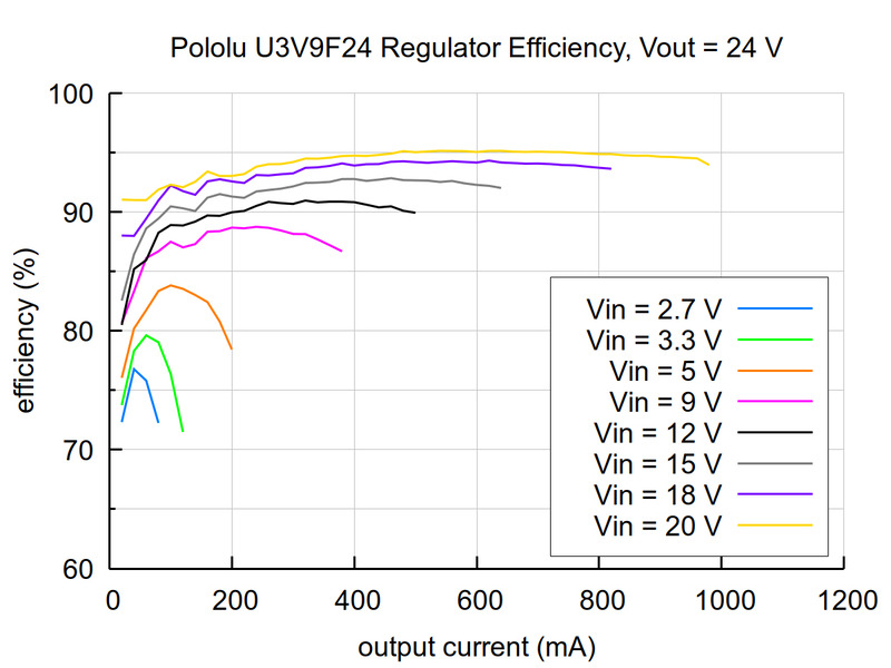 Przetwornica impulsowa, która stabilizuje napięcie 24 V z wejściowego zakresu od 2,6 V do 20 V. Oferuje wysoką sprawność rzędu 70–95% oraz możliwość pracy przy ciągłym prądzie wejściowym do 900 mA i chwilowym ograniczeniu do 2,2 A. Dzięki częstotliwości przełączania 1,6 MHz oraz trybowi oszczędzania energii sprawdza się zarówno w wydajnych, jak i energooszczędnych aplikacjach. Pololu 5588