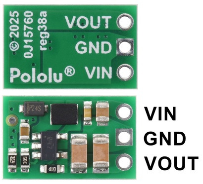 Moduł przetwornicy DC-DC Step-up oparty na układzie U3V50ALV. Napięcie wejściowe 2.9..12V, napięcie wyjściowe 4..12V, maksymalny prąd 5 A. Dwa otwory montażowe. Pololu 2570