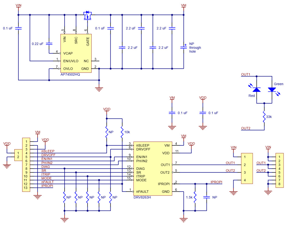 DRV8263H Single Brushed DC Motor Driver Carrier to kompaktowy i wszechstronny płytka sterownik silników prądu stałego z układem Texas Instruments DRV8263H-Q1. Umożliwia sterowanie jednym silnikiem DC w dwóch lub dwoma silnikami w jednym kierunku, z szerokim zakresem napięcia zasilania od 4,5 V do 65 V oraz ciągłym prądem do 3,5 A (z możliwością limitu do 10 A). Moduł ma wbudowane czujniki prądu oraz regulację ograniczającą szczytowy prąd silnika, a także ochronę przed zbyt wysokim napięciem, przeciążeniem prądowym i przegrzaniem.