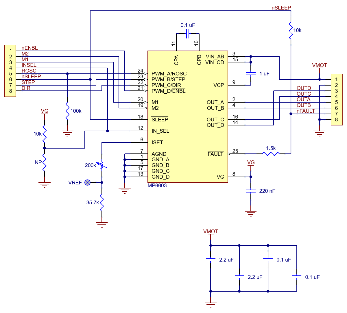 Pololu MP6603 Stepper Motor Driver Carrier przeznaczony do sterowania jednym bipolarnym silnikiem krokowym. Moduł oparty na podwójnym mostku H MP6603 firmy Monolithic Power Systems umożliwia sterowanie silnikiem w trybie pełnego kroku, półkroku, 1/4 kroku oraz 1/8 kroku. Interfejs STEP/DIR upraszcza współpracę z mikrokontrolerami i sterownikami CNC, a układ wyprowadzeń oraz sposób sterowania pozostają w wielu zastosowaniach zgodne z popularnymi modułami A4988, co ułatwia wymianę w istniejących projektach.