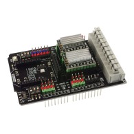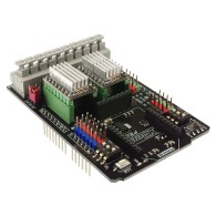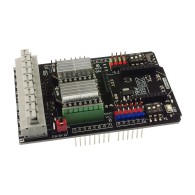 Moduł sterownika silnika krokowego DRV8825 dla Arduino. Rozkład wyprowadzeń jest zgodny z Arduino Uno Rev3, dzięki czemu może być stosowany z wieloma popularnymi płytkami rozwojowymi. Pozwala na sterowanie dwoma silnikami bipolarnymi i wyposażony został w złącze XBee pozwalajace na podłączenie modułów komunikacyjnych WiFi, Bluetooth lub RF. Silniki mogą być zasilane napięciem od 8,2 do 45 V i są podłączane do wygodnych złączy zaciskowych. Na płytce wyprowadzono piny Arduino zgodnie ze standardem Gravity, co pozwala w łatwy sposób podłączyć dodatkowe czujniki. Pełna dokumentacja dostępna jest na stronie produktu.