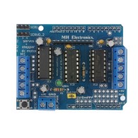 Adafruit Motorshield to shield umożliwiający łatwe sterowanie silnikami DC, krokowymi oraz serwomechanizmami przy pomocy Arduino. Zawiera sterowniki silników DC, krokowych oraz wyjścia do sterowania serwomechanizmami. Umożliwia adresowanie oraz łączenie ekspanderów (do 32) i sterowanie przy pomocy jednej płytki Arduino. Adafruit 1438