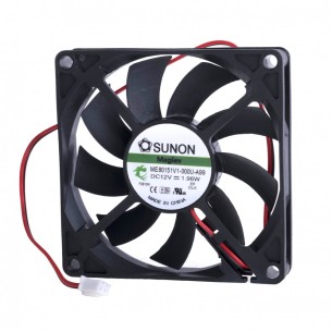 Sunon EF80251S2-1000U-A99 to kompaktowy wentylator osiowy 12 V DC z bezszczotkowym silnikiem i łożyskiem ślizgowym, zapewniający wydajny przepływ powietrza 62,86 m³/h przy niskim poziomie hałasu. Przeznaczony do chłodzenia urządzeń elektronicznych w zakresie temperatur od –10 do 70 °C.