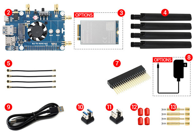 Płytka bazowa wyposażona została w złącze M2, dzięki czemu umożliwia połączenie z różnymi modułami komunikacyjnymi ze złączem M2 B Key. Na płytce umieszczono również port USB oraz gniazdo karty SIM. Do Raspberry Pi zestaw podłączany jest za pomocą standardowego złącza 40-pinowego. Do zestawu dołączone zostały adaptery, anteny i wentylator chłodzący. Pełna dokumentacja dostępna jest na stronie Wiki produktu.