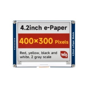 Moduł z 3-kolorowym (czerwony, czarny, biały) wyświetlaczem e-Paper o przekątnej 4.2" i rozdzielczości 400×300 px. Interfejs SPI. Waveshare 4.2inch e-Paper Module (B)