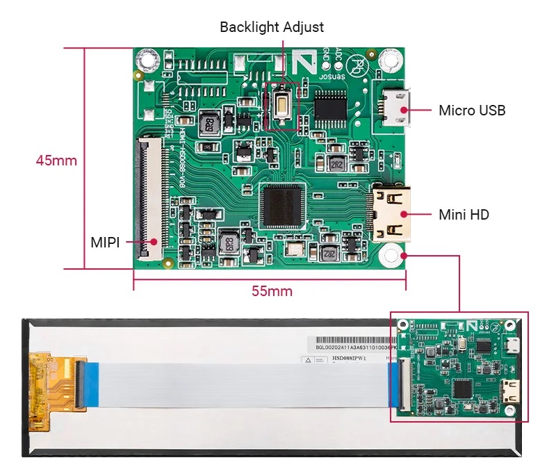 Wyświetlacz IPS 8,8" o rozdzielczości 1920 x 480 px z interfejsem HDMI i zasilaniem micro USB do Raspberry Pi, komputerów i urządzeń multimedialnych. Elecrow DIS88240P
