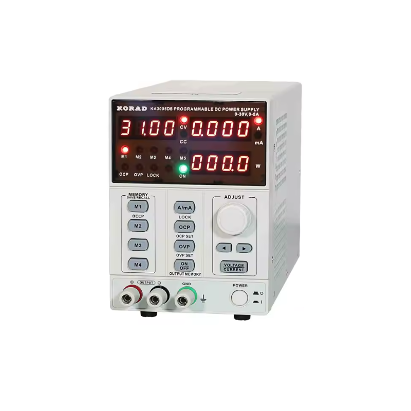 Zasilacz laboratoryjny Korad KA3005DS, który oferuje stabilizowane napięcie od 0 V do 30 V i prąd do 5 A z precyzyjnym pomiarem do trzech miejsc po przecinku, idealny do zastosowań amatorskich i profesjonalnych. Dzięki możliwości zapamiętania pięciu konfiguracji oraz zabezpieczeniom OVP i OCP, KA3005DS jest niezawodnym narzędziem w laboratoriach i podczas napraw elektronicznych. KORAD KA3005DS