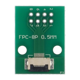 Adapter 8-pinowego złącza FPC/FFC o rastrze 0,5mm na otwory DIP raster 2,54mm.