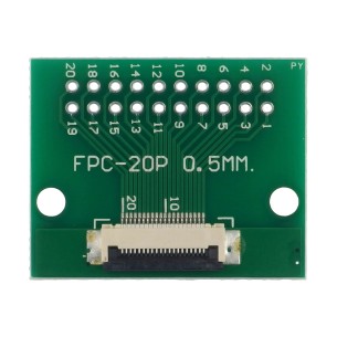 Adapter 20-pinowego złącza FPC/FFC o rastrze 0,5mm na otwory DIP raster 2,54mm.